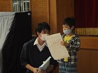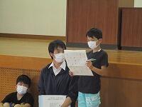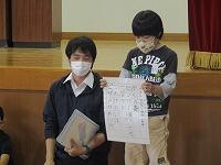 また、表彰を3つ行いました。1点目が第70回県民俳句大会に「おとうとの すいか畑に 実が五つ」で2年生が入選しました。また、西日本読書感想画に1年生が県入選を果たしました。さらに同じ1年生が新体力テストで総合評価がA判定で表彰されました。2名とも本当におめでとうございました。