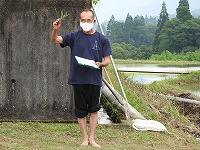 ところで、休み明けの今日は実習田「気合い田」の田の草取りを行いました。昨年に引き続き今年もタニシが大量発生していて、草が全くなく、稲にまで被害が出てきていたので、タニシ取りを全校児童で行いました。転入して初めてこの活動を経験する子たちも、初めは気持ち悪がっていましたが、徐々に慣れていき、最後は、全員タニシを手で迷うことなく触れるようになっていました。自然とのふれあいって本当に素晴らしいですね。