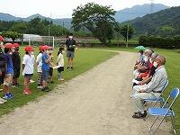 本日のグランドゴルフにご協力いただいたたくさんの地域の方々、暑い中そして長時間にわたって、子どもたちとふれあっていただき、本当にありがとうございました。来年度は、コロナも終息していると思いますので、ぜひ給食までご一緒していただければと考えています。本日はありがとうございました。そして、次年度もよろしくお願いします。