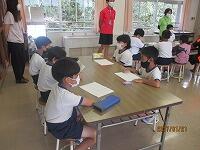 姿勢が整うと、茶道の歴史について教えていただき、お茶入れからお茶をいただくまでの作法のお手本を見せていただきました。その後は、和菓子をいただき、それぞれが茶立てに挑戦しました。姿勢を保持したまま茶立てを行い、とても落ち着いた雰囲気の中で茶立てが進みました。中には、泡立てがとても上手でおいしそうなお茶が完成している子どもがたくさん見られました。本来は、立てたお茶を人に振る舞うことが基本なのですが、新型コロナの感染防止を考慮し、今回は、自分の立てたお茶は自分でいただきました。ただ、講師の方に「もう一杯飲みたい人。」と聞かれると全員が迷わず挙手をし、全員が二杯目もおいしくいただきました。作法だけでなく、お茶のおいしさも十分に味わった茶道教室でした。