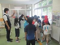 その場合、無言でいかに迅速に避難できるかが大切になります。事前指導が徹底してあり、写真では伝わりませんが避難中全く子どもたちの声は聞こえませんでした。さらに、安全担当の職員の話も集中してしっかりと聞くことができました。残念ながら、この時間帯雨が強くなったため、公民館までの避難は省略しましたが、緊張感をもって真剣に取り組むことができたように思います。