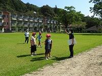 今日のふれあい活動は、グランドゴルフです。実は、昨年度は、コロナ感染防止のため中止を余儀なくされ、一昨年度は雨天のため体育館での活動であったということで、3年生以下の子どもたちは、今日が初めてのグランドゴルフでした。そのためか、競技を始めてしばらくは、空振りが出たり、当たっても1mぐらいしかボールがとばない子が続出していましたが、ホールが進むごとに「カキ~ン」という心地よい打球音や「すごい」という歓声も聞かれるようになりました。始めた頃の曇り空から少しずつ日差しが強くなり、定期的に給水タイムを設定しながらの活動でしたが、地域の方々と会話をしながらの楽しい活動になりました。ちなみに今日は、子どもたち全員が名前を大きく書いたテープを胸にはりました。今日の活動で、一人でもたくさんの子どもたちの名前を覚えていただいていたらうれしいですね。