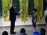 3学期2日目の今日は、東郷まちづくり協議会の方々からあいさつ標語の受賞者2名に表彰状と記念品が贈呈されました。さっそく校門に写真のあいさつ標語のぼりを設置します。協議会の皆様ありがとうございました。