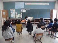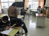 5時間目に突然、元気な短歌朗詠の声が響いてきたので、各教室を参観してみました。すると、来週の12月6日(日)に牧水ヶ丘祭が開催される関係で、いくつかの学年が祭で発表する短歌朗詠の練習をしていました。まず1・2年生の教室を参観すると、祭で発表する短歌を作った理由を一生懸命考えていました。5・6年生は、場所を特別教室に場所を移して、2枚目の写真のような形ですごく大きな声で発表の練習をしていました。冒頭に書いた元気な短歌朗詠は5・6年生だったようです。3・4年生はというと、ALTの先生と、とても楽しそうに英会話の学習をしていました。今日の学習がうまくいくと、英語による劇に挑戦できるということで、体が前のめりになりながら集中して学習に取り組んでいました。ここで、5・6年生が特別教室で朗詠の練習をしている理由が何となく分かった気がしたところです。なるほど、なるほど。