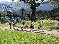 結団式が終了すると1時間目は、全校体育です。運動場で団技「中玉ころがし」の練習が中心でした。見た目以上に難しそうだったので、練習あるのみ!