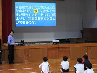 今日は、ハッピータイムが行われました。これは、朝の活動の時間を活用したボランティア(保護者や保護者OB)の方による読み聞かせです。子供達が本に親しむ機会を増やそうと20年以上続けられているボランティアだそうです。大変ありがたいことです。ありがとうございます。