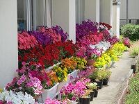先週からお客様がとても多いのですが、来校された方々が口を揃えて、本校の花がきれいであることを褒めてくださっています。とてもうれしかったので、今日もプランターや花壇の花を紹介します。ピンクの小さい花シレネと色とりどりのペチュニアがほぼ満開です。