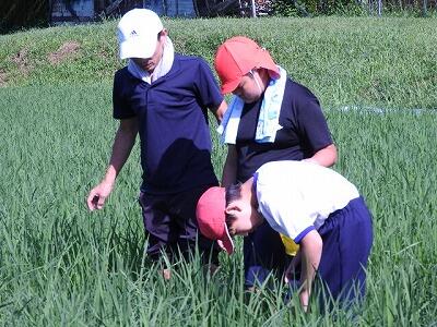 今日は、田の草取りをしました。暑い中でしたので熱中症を予防し短時間で行いました。毎年行っていることですが、このようにお世話をするからこそ、おいしいお米ができることを学べています。