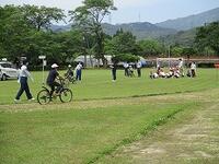 お話が終わった後は、運動場に作られた模擬道路を使って