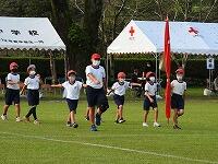 前日準備からの雨で、当日開催が心配されましたが、10月10日(日)に無事運動会を開催することができました。前日準備も小雨の降る中、地域の方々や保護者の方々のご協力のおかげで、無事終了することができました。ただ土曜日の夜からかなり強い雨が降ったため、当日の朝の運動場にはたくさんの水たまりができていました。ただ早朝より多くの保護者や地域の方々に来ていただき運動場の整備をしていただいたおかげで、予定より15分遅れましたが無事開催することができました。本当にありがとうございました。