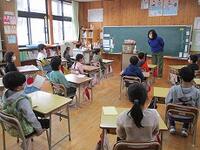 学校隣りの坪谷公民館に行って、地域の方との交流を楽しみます。