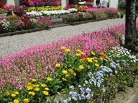 先週からお客様がとても多いのですが、来校された方々が口を揃えて、本校の花がきれいであることを褒めてくださっています。とてもうれしかったので、今日もプランターや花壇の花を紹介します。ピンクの小さい花シレネと色とりどりのペチュニアがほぼ満開です。