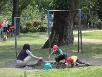 なお本日は、朝から雨ですが、昨日の昼休みは、写真のように素晴らしい天気で子どもたちや先生方が運動場で砂場遊びや竹馬等を楽しんでいました。子どもたちと先生方との何とも言えない心温まる様子をアオバズクも木の上から眺めていました。