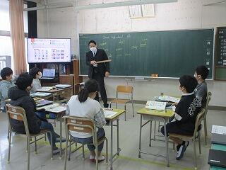 担任の先生と一緒に外国語の勉強をがんばっていました。