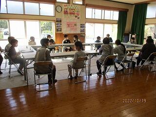 2人1組になるように児童が席について改めてお互いに自己紹介。
