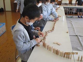 そして次は、みんなで1つのドミノをつなげて作ることになったのですが、