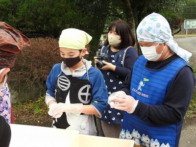 今日は全校で育てた五色米を使ったもちつきをしました。たくさんつくことができました。つきあがった餅は持って帰ったり、日頃お世話になっており地域の方々にも配りました。