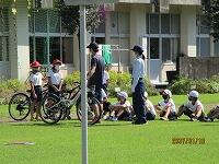 今日は、交通教室を行いました。今回は、日向警察署の方と交通安全協会の方2名が自転車の正しい乗り方について指導してくださいました。はじめに、自転車に乗る時の注意点を紙芝居形式で説明していただきました。その後、横断歩道のない道路、信号機のある交差点、信号はないが横断歩道のある道路の3種類の道路の正しい自転車の渡り方を全校児童が一人ずつ運動場で練習しました。最後に4年生以上の子どもちが、実際に道路に出て、信号のない横断歩道の渡り方を体験しました。この体験を実施するにあたりご協力いただいた日向警察署の方に心より感謝申し上げます。ありがとうございました。緊張感のあるすばらしい交通教室にすることができました。また、体験中に車を止めていただいた方々に対し、お詫びと感謝の気持ちを申し上げます。実際に本当の道路で交通教室を実施できるのも「少人数の学校のよさ」とつい幸せな気持ちになった交通教室でした。