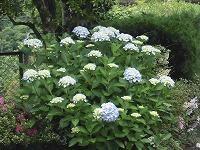 ◎ あじさいが みんな一緒に 顔を出す 赤青ピンク 個性が出てるね