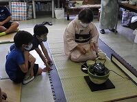 昨日9月16日に茶道裏千家の方々3名に茶道教室を開いていただきました。はじめにお茶の歴史や作法についてお話をしていただきました。その後お茶をたてる時の手本を見せていただき、実際に子どもたちもお茶をたてました。泡立てが想像した以上に難しく、一回目は、ほとんどの子どもたちが悪戦苦闘の様子でした。しかし、子どもたちの順応性は素晴らしく2回目には、みんなきれいに泡立てが成功していました。ただ、残念ながらコロナ対策として今回は、たてたお茶は友だちにふるまわず、自分で飲むことになりました。まあ、それでも子どもたちは、大満足の体験になったようです。う~ん。このコロナの影響っていつまで続くのでしょう。1日も早く日常を取り戻したいものです。最後になりますが、裏千家のみなさん貴重な体験をさせていただいて本当にありがとうございました。来年もよろしくお願いします。