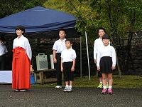 今日は、牧水祭当日でした。朝から雨模様で、テントの中で、フェイスシールドを付けた状態での発表になることを覚悟していました。ところが、発表の場である牧水生家に子どもたちが到着し、式典が始まるころには、雨もあがり、テントも急遽撤去されました。