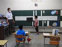 今日は、昨日に続き1年生が研究授業を行いました。1年生は、国語で「くじらぐも」という物語文の授業でした。子どもたちやくじらぐもの台詞を見上げたり、見下ろしたりしながら登場人物になりきって音読をしていました。他の学級の先生方が見に来られていて、うれしそうに手をあげ、張り切って発表する姿が見られました。その姿が1年生らしくてとてもかわいらしかったです。高学年だけでなく、1年生もしっかり学習に取り組んでいてうれしく思います。3・4年生は、来週の月曜日に研究授業を行う予定です。