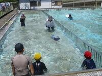 終業式前日である今日の3時間目に着衣泳を子どもたちは、体験しました。いつもと違い、服があると泳ぎにくいことは十分に体感できたようです。また、ペットボトルを使って仰向けに浮く練習では、4年生以上になるととても上手に浮くことができていました。また、3年生以下の子どもたちも一生懸命ペットボトルを抱きしめて、うまくできるように何回も何回も練習していました。