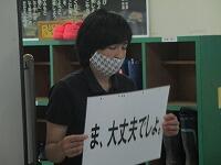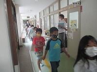 その場合、無言でいかに迅速に避難できるかが大切になります。事前指導が徹底してあり、写真では伝わりませんが避難中全く子どもたちの声は聞こえませんでした。さらに、安全担当の職員の話も集中してしっかりと聞くことができました。残念ながら、この時間帯雨が強くなったため、公民館までの避難は省略しましたが、緊張感をもって真剣に取り組むことができたように思います。
