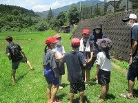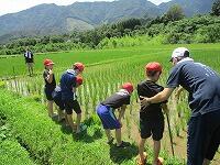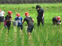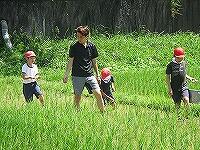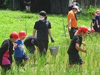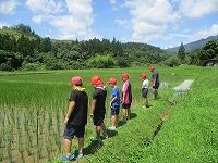 ところで、休み明けの今日は実習田「気合い田」の田の草取りを行いました。昨年に引き続き今年もタニシが大量発生していて、草が全くなく、稲にまで被害が出てきていたので、タニシ取りを全校児童で行いました。転入して初めてこの活動を経験する子たちも、初めは気持ち悪がっていましたが、徐々に慣れていき、最後は、全員タニシを手で迷うことなく触れるようになっていました。自然とのふれあいって本当に素晴らしいですね。