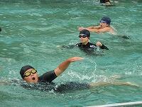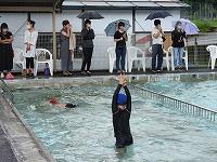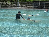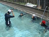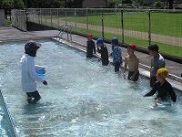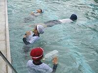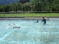 終業式前日である今日の3時間目に着衣泳を子どもたちは、体験しました。いつもと違い、服があると泳ぎにくいことは十分に体感できたようです。また、ペットボトルを使って仰向けに浮く練習では、4年生以上になるととても上手に浮くことができていました。また、3年生以下の子どもたちも一生懸命ペットボトルを抱きしめて、うまくできるように何回も何回も練習していました。