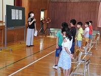 今日は、2時間目に全校音楽で、牧水の歌の練習を行いました。子どもたちは、7月3日に国文祭において、「白鳥」と「幾山河」の2つの短歌の朗詠と出演者全員による合唱を発表しました。本校の子どもたちは、毎年いろいろな場で発表をする機会があります。今度は、牧水先生の命日である9月17日に開催される日向市の「牧水祭」で発表を行います。今日は、その発表に向けての練習でした。国文祭とちがい今度は、牧水先生の短歌の歌唱曲を3曲、そして、呼びかけや短歌朗詠を含め15分以上の本格的な発表になります。練習を見ていると、本年度転入してきた子どもたちや一年生も、国文祭の経験を生かし、自信をもって大きな声で発表ができるようになってきていました。本番までは、まだ時間があますので、さらに素晴らしい発表になることを期待したいと思います。国文祭に続き、毎週本校の高学年の音楽を教えていただいている東郷学園の音楽の先生に本日も全校を対象に歌唱指導をしていただきました。歌うごとに子どもたちの歌声がきれいになっています。ご指導本当にありがとうござます。今後もよろしくお願いします。