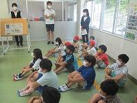 その場合、無言でいかに迅速に避難できるかが大切になります。事前指導が徹底してあり、写真では伝わりませんが避難中全く子どもたちの声は聞こえませんでした。さらに、安全担当の職員の話も集中してしっかりと聞くことができました。残念ながら、この時間帯雨が強くなったため、公民館までの避難は省略しましたが、緊張感をもって真剣に取り組むことができたように思います。