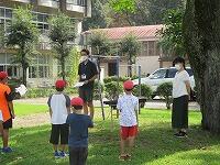今日は、東郷学園の音楽の先生に、市牧水祭で子どもたちが発表する「牧水の歌」3曲の指導をしていただきました。当初は練習を体育館で実施する予定でしたが、急遽新型コロナと熱中症の対策として、運動場で実施することにしました。先日もお知らせしたように本校は運動場に木陰があるので、恵まれた環境の中、しっかりと練習できたように思います。また、専門的なご指導のおかげで、子どもたちの歌声が確実にきれいになっていく様子が見られました。素晴らしいご指導ありがとうございました。