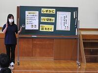 なお今月の目標は、しっかりと話を聞くことでした。学習担当の先生から、静かに聞くこと、よい姿勢で聞くこと、話を最後まできちんときくことについて話していただきました。先生の話が進むにつれ、子どもたちの話の聞き方が確実によくなっているように感じられました。この時点で、すでに子どもたちは、しっかり聞くことができていたと思います。9月はさらにたくさんの聞き方名人が育ってほしいですね。