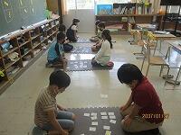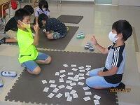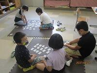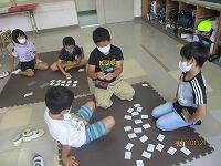 なお、5・6年生は、様子を見に行くと、まだ準備の段階でした。ただ、5・6年生については、正式ルールにそって、札を写真にあるように円形状にきれいに並べていました。本校の子どもたちは、こうして牧水先生への思いを育んでいきます。
