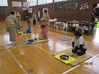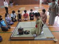 和心会の方々6名を講師に招き、昨日10月19日(火)の午後、3~6年生が茶道教室を行いました。和服に身を包まれた講師の方に、教室の初めに立つ姿勢、座って行うお辞儀の作法について指導していただくと、子どもたちの姿勢が瞬く間に美しい姿勢に変化しました。腰を伸ばす、お辞儀は必ず止めるという2つだけの指導でしたが、写真のように効果が抜群でした。日本の礼儀という伝統の素晴らしさを肌で感じた思いです。