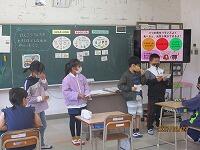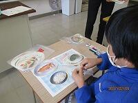 今日は、全学年を対象に栄養教諭の先生に来校していただき、食育指導を行っていただきました。低学年は、クイズや紙芝居で3つの栄養素をバランスよく食べることの大切さを学習した上で、「何でも食べるパクパク作戦」をみんなで考えました。きらいな物は、好きな物といっしょに食べるや1回箸をつけたものは必ず食べる等、低学年なりに一生懸命考えていました。中学年は、今日の給食の献立を題材に中にどんな具材が入っているかを確認した後、今日の給食の具材が3つの栄養素のどれに分類されるかをみんなで考えていきました。また、正しいおやつの食べ方についても学びました。ポテトチップス一袋を一人で食べると食べ過ぎみたいですね。おやつに適した量は、片手にのる程度だそうです。高学年は、20年後にどんな大人になりたいかをまず考えました。元気で仕事をしていたいという発表があったので、食事の大切さを学ぶことになりました。栄養教諭の先生から朝昼夕の三食をきちんと食べることの大切さを教えていただいた後、主食、副食の写真カードを使って、朝ご飯のメニューを考えることになりました。できあがったメニューを見てみると写真のように完全な和食になっていました。ちなみに担任の先生は、完全な洋食でした。