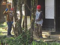 今日は、午後から牧水生家の清掃を行いました。清掃する場所は、生家の周辺、駐車場、歌碑周辺の三カ所です。活動前には、牧水文学館の方に清掃に対する感謝のごあいさつもいただきました。活動が始まると事前に話合いで決めていた各グループのめあてにしたがって子どもたちは時間いっぱい一生懸命に清掃をしてくれました。清掃が終了すると落ち葉がなくなり、写真のように生家周辺をきれいな状態にすることができました。清掃が終了するとグループごとに活動の振り返りを行い、その結果を各グループの代表が発表しました。「これまでで一番がんばりました。」という頼もしい感想を多数聞くことができました。