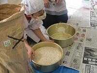 本校では、毎年牧水ヶ丘祭り終了後に、子どもたちが種から育てて、田植え、田の草取り、稲刈り、脱穀をして収穫したもち米を祭りに参加していただいた方々に販売しています。販売自体は、全校児童で行いますが、販売用に袋詰めをしたりメッセージを袋に入れたりする作業は、5・6年生が行っています。写真のように今日がその作業の日で、1升ますを使い1袋ずつ丁寧に作業を進めていました。昨年は、見事完売しましたが、今年もぜひ完売を目指したいと思います。ちなみに、もち米を売った益金は、毎年全校児童が挑戦している漢字検定の検定料として利用させていただいています。今年もご協力よろしくお願いします。