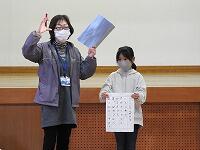 競技が始まると、ぴ~んと張り詰めた緊張感が漂う中、子どもたちの「はい」という札をとる声が教室に響きました。とった札に間違いがないか審判の先生に札を見せて確認する姿に本格的な大会の雰囲気を感じました。