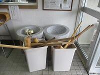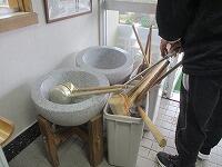 今日は、子どもたちを全学年5時間授業として、放課後写真のような形で先生方が明日の準備を行っていました。臼やきね、かまど、長机、せいろ等今日のうちに全て、職員玄関や農具倉庫の方へ移動させました。残念ながら今日の夕方から雨の予報なので、外への設置は、明日の朝行うことにしたところです。