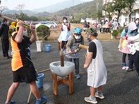 もちつき大会では、たくさんの保護者の方々のご協力のもと、予定したもち米を全てつき終わることができました。今年は、1年生を含め、転入してきた7名が本校で初めてのもちつきを体験しましたが、自然に子どもたちも保護者も笑顔になるとても楽しいもちつきにすることができました。ただ6年生とっては、今回が最後のもちつきになり、もちつきをしている姿を見ていて、何となくさびしい気持ちにもなりました。6年間行ってきたもちつきをいい思い出にしてほしいと思います。
