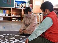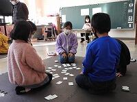 競技が始まると、ぴ~んと張り詰めた緊張感が漂う中、子どもたちの「はい」という札をとる声が教室に響きました。とった札に間違いがないか審判の先生に札を見せて確認する姿に本格的な大会の雰囲気を感じました。