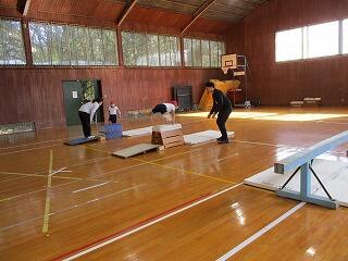 体育館では、とび箱遊びに下学年が取り組んでいました。