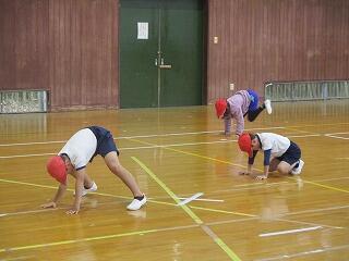 楽しそうにとび箱につながる運動に取り組んでいました。