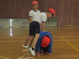 体育館では、とび箱遊びに下学年が取り組んでいました。