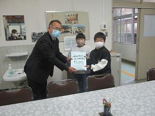 贈呈の様子を撮るために、ハイ、パチリ。