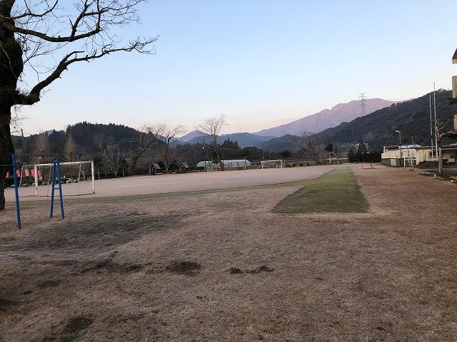 今日の朝の坪谷小学校の運動場の様子です。