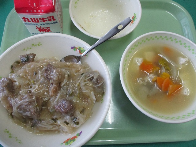 今日は昼から出張です。で、今日は給食の紹介をしましょう。