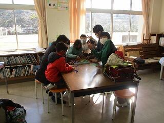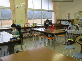 図書室でバスのお迎えを待っています。